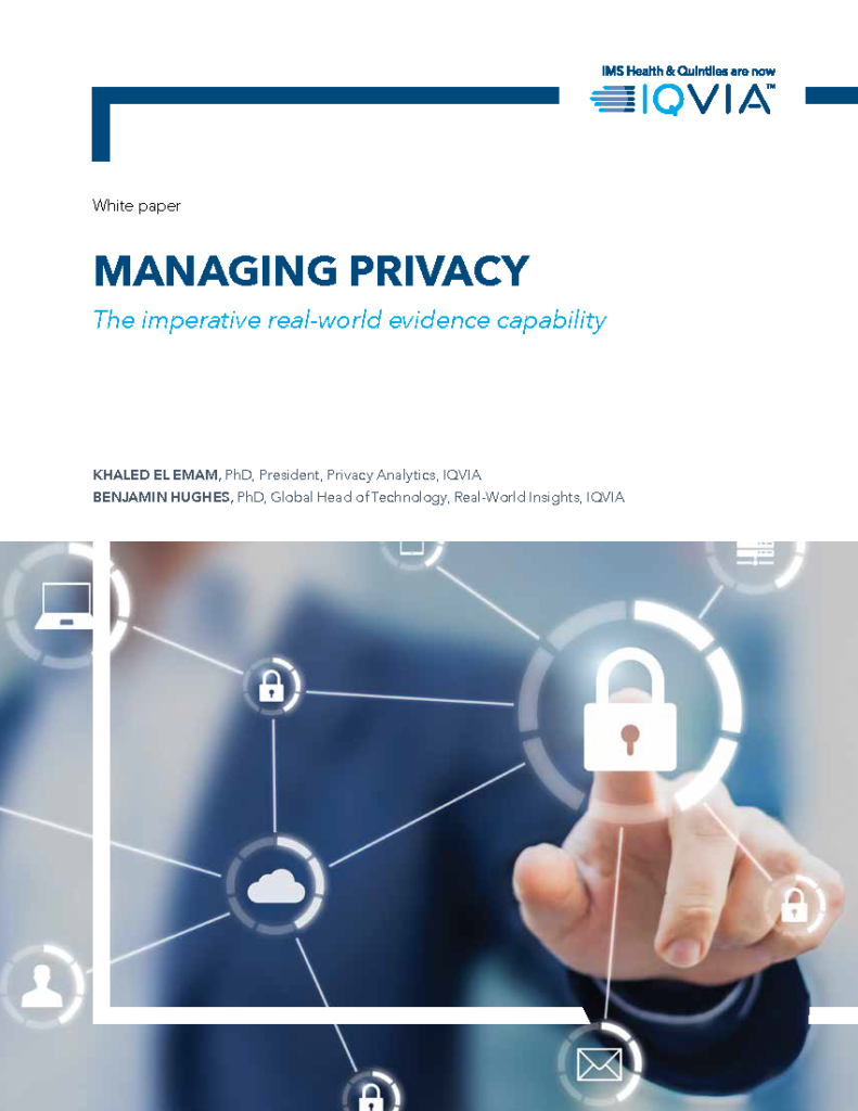 This IQVIA/Privacy Analytics white paper on managing privacy for real-world evidence can keep you current and help build an effective privacy governance framework while achieving more useful, faster insights. Written by Dr. Ben Hughes and Dr. Khaled El Emam, this white paper addresses: