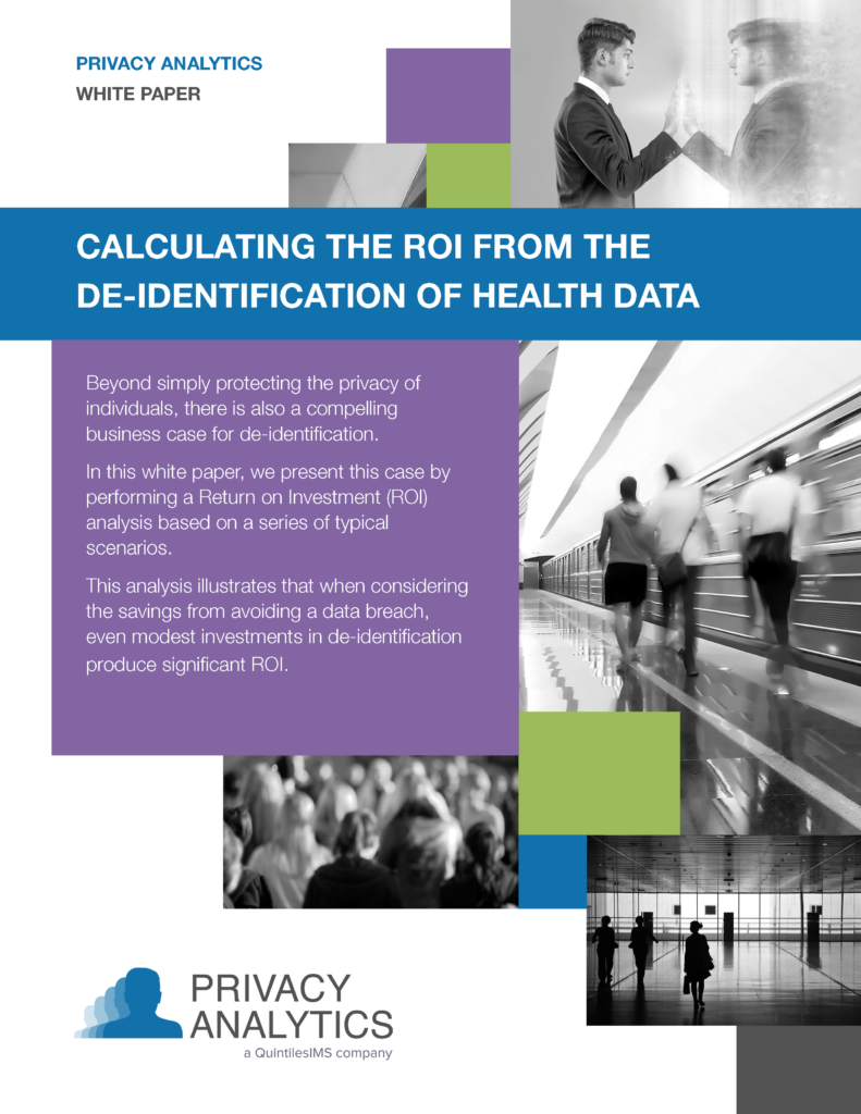 We did the math. Make sure to download Calculating the ROI on the De-Identification of Health Data. In In this white paper, we present this case by performing a Return on Investment (ROI) analysis based on a series of typical scenarios. This analysis illustrates that when considering the savings from avoiding a data breach, even modest investments in de-identification produce significant ROI.